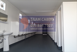 Brand New 12 x 3.6 meter ablution Cabin come with all standard electrical fitting such as false ceiling led light, power sockets, Electrical DB, out door bulk light, Sanitary fitting such as WC, washbaisn, mirror, paper holder, towel holder exhuast fan etc. The Cabin is constructed as plug and play, all you need to do is give power, water and drainage connection.(Septic tank and water tank optional)(AC Supply and installation Optional)